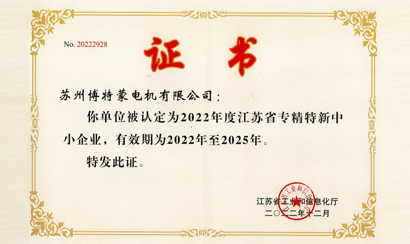 苏州博特蒙电机有限公司凭借专业的研发队伍、科学的企业管理,集思广益,精诚合作,喜获佳音———收到了江苏省科学技术厅、江苏省财政厅、国家税务总局江苏省税务局联合颁发的“高新技术企业”认定证书,由此正式迈入了国家高新技术企业行列。 荣获国家高新技术企业,说明了国家相关部门对博特蒙电机科学技术创新成果的高度肯定,同时,积极推动了我司自主创新、自主研发的进程,也成为公司发展史上的又一...