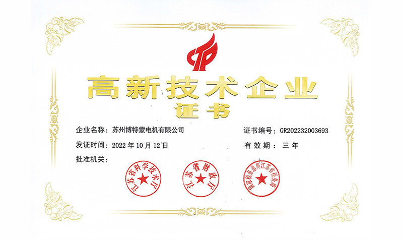 国家高新技术企业认定对企业拥有的核心知识产权、研发投入、研发团队建设、科技成果转化能力、组织管理能力及成长能力等综合指标有着严格的审核要求,已成为评估国内企业科技综合实力的权威标准,是我国科技创新型企业的重要荣誉之一。博特蒙电机有限公司能够再次顺利通过国家高新技术企业认定,意味着公司在专业领域的技术创新、成果转化应用等方面得到了官方权威认可,标志着公司研发与技术能力迈入新发展阶段。...